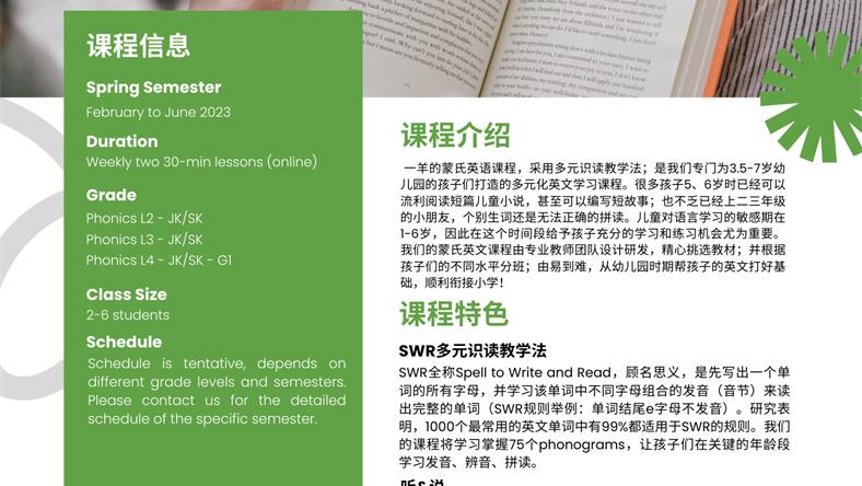【蒙氏英语】一羊教育春季线上免费公开课,JK/SK孩子打造的多元化识读课程