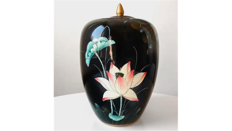 水生莲花手绘瓷瓶