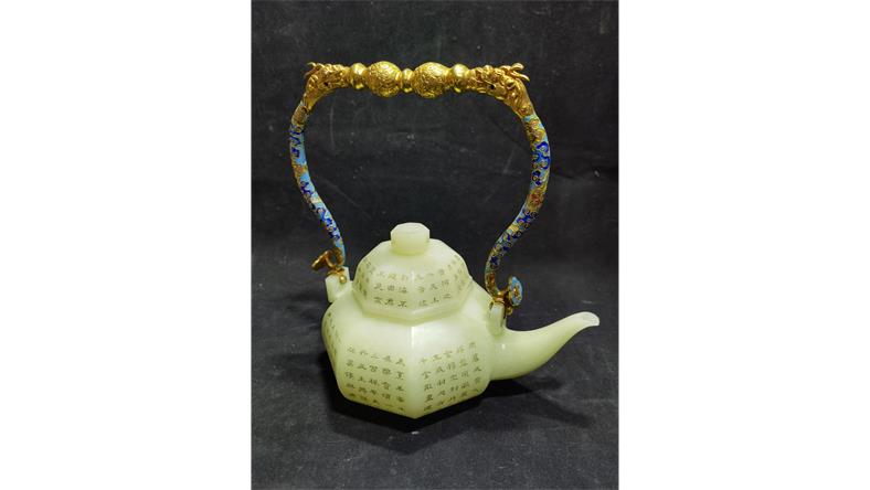 @西葫芦:老和田玉景泰蓝@周周老货:那第一个壶多少钱?有损坏的地方吗?