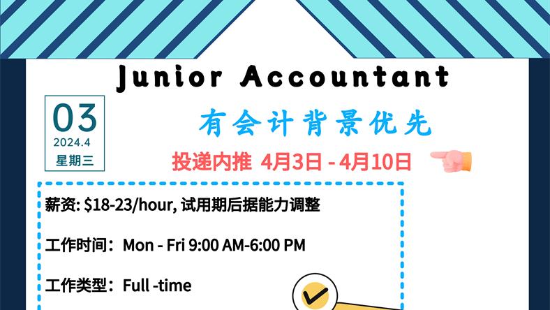 【168新岗】北约克物流公司招聘Junior Accountant 1名