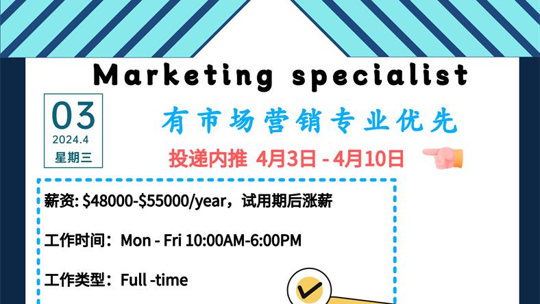 【168新岗】万锦地产公司招聘Marketing specialist 1名(可移民)