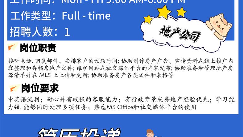 【168新岗】万锦地产公司招聘Real Estate Assistant 1名