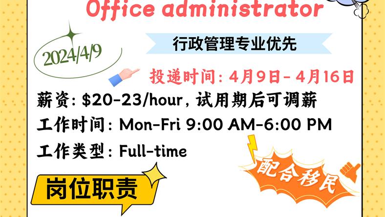 【168新岗】士嘉堡车行招聘Office administrator 1名 (可移民)