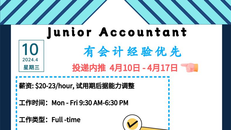 【168新岗】北约克汽配公司招聘Junior Accountant 1名