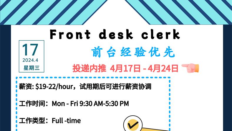 【168新岗】万锦心理治疗诊所招聘Front desk clerk 1名
