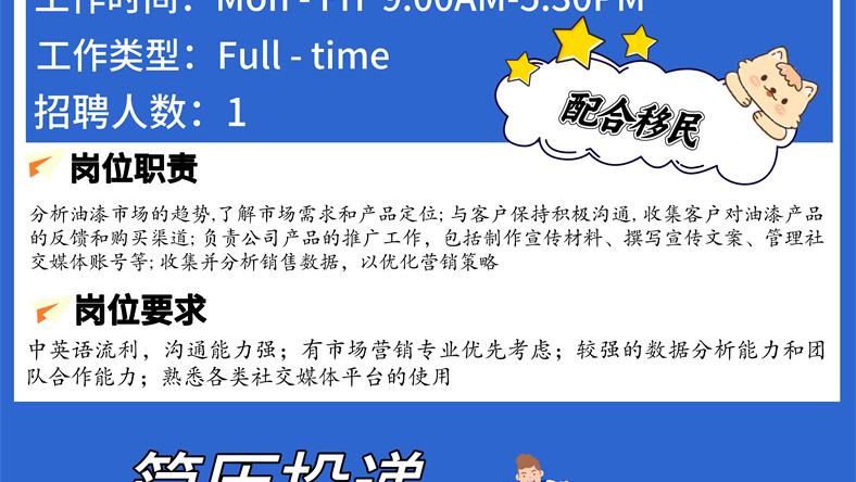 【168新岗】多伦多油漆公司招聘Marketing specialist 1名(可移民)