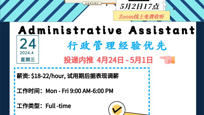 【168新岗】士嘉堡橱柜五金配件公司招聘Administrative Assistant 1名