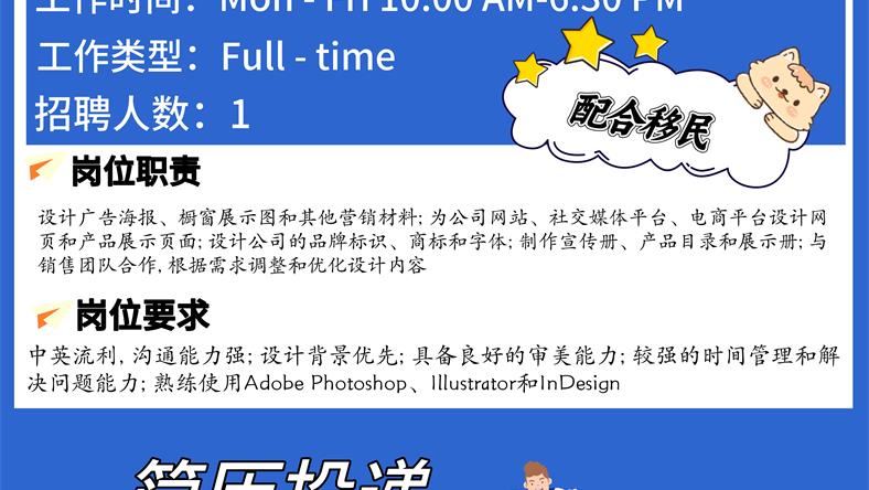 【168新岗】旺市珠宝公司招聘Graphic Artist 1名(可移民)