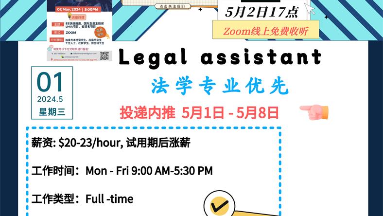 【168新岗】北约克律师事务所招聘Legal assistant(可移民)