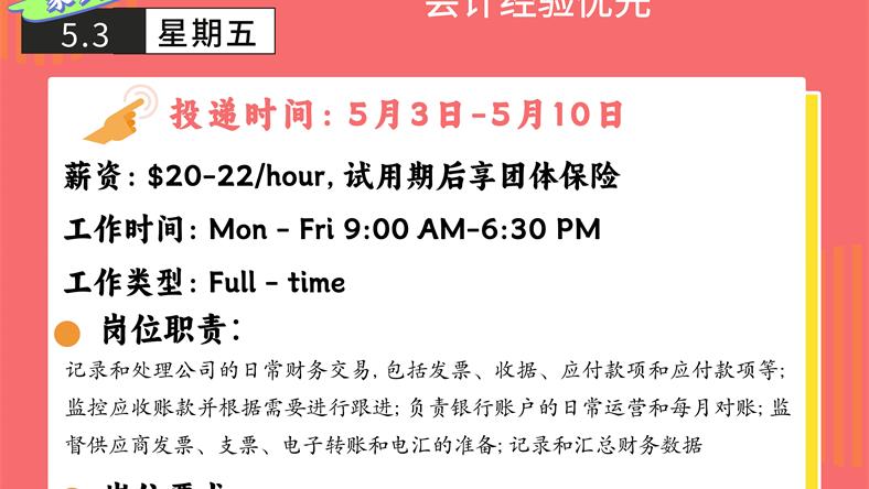 【168新岗】士嘉堡家具公司招聘Junior Accountant 1名