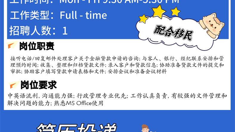 【168新岗】密西贷款金融公司招聘Office administrator 1名 (可移民)