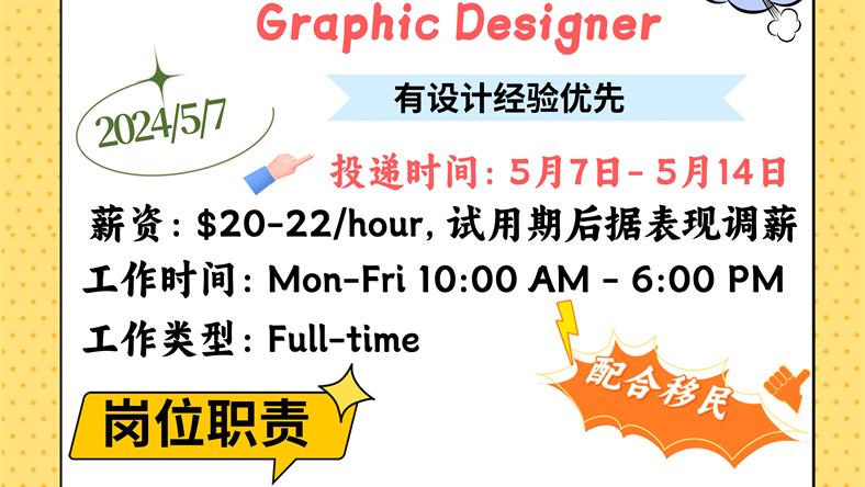 【168新岗】北约克地产公司招聘Graphic Designer 1名(可移民)