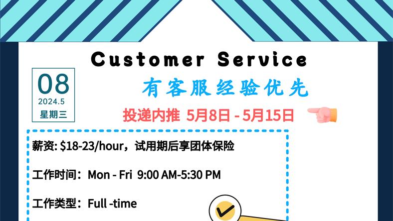 【168新岗】密西汽配公司招聘Customer Service 1名
