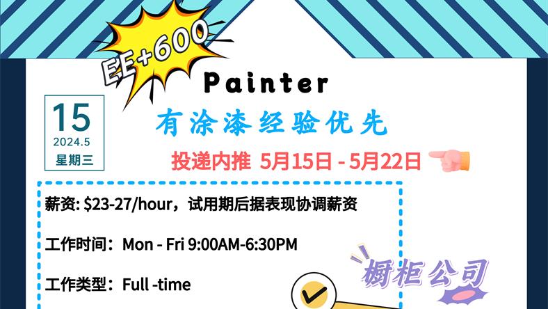 【168新岗】北约克橱柜公司招Painter 1名 (skilled trade +可移民)