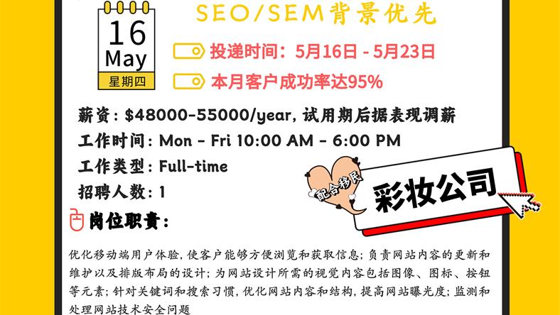 【168新岗】密西彩妆公司招聘Web Designer 1名(可移民)