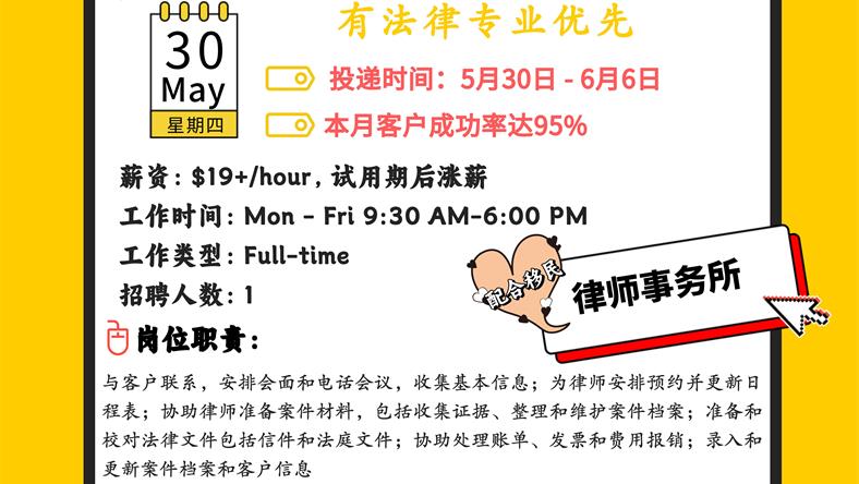 【168新岗】Brampton律师事务所招聘Legal assistant(可移民)