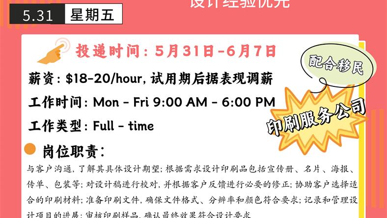 【168新岗】多伦多印刷服务公司招聘Graphic Designer 1名(可移民)