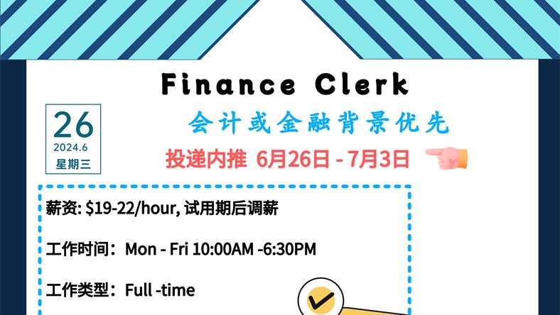 【168新岗】多伦多旅游公司招聘Finance Clerk 1名