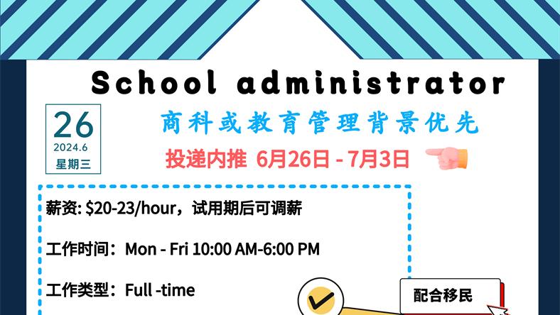 【168新岗】万锦智能教学培训中心招聘School administrator 1名 (可移民)