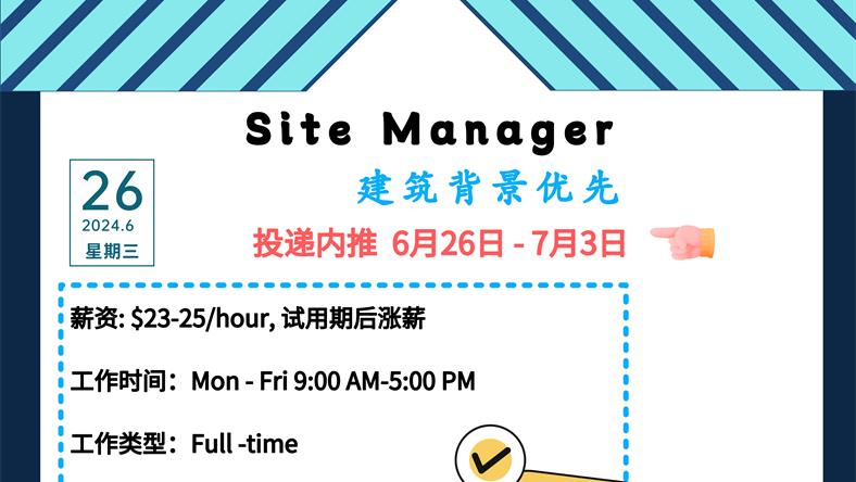 【168新岗】北约克建筑服务公司招聘Site Manager 1名