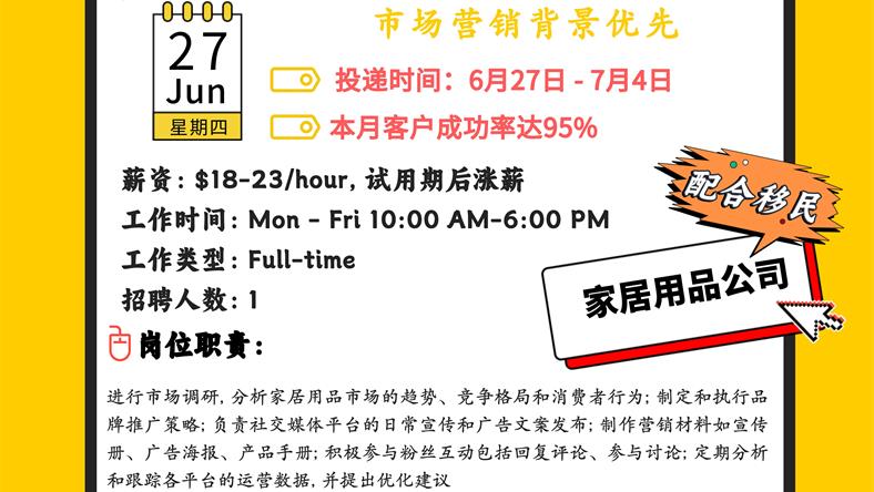 【168新岗】旺市家居用品公司招聘Marketing Specialist 1名(可移民)