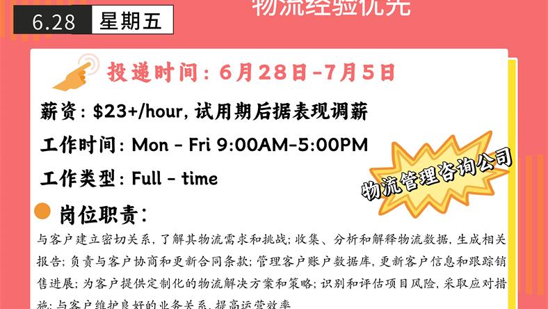【168新岗】北约克物流管理咨询公司招聘Operation Coordinator 1名