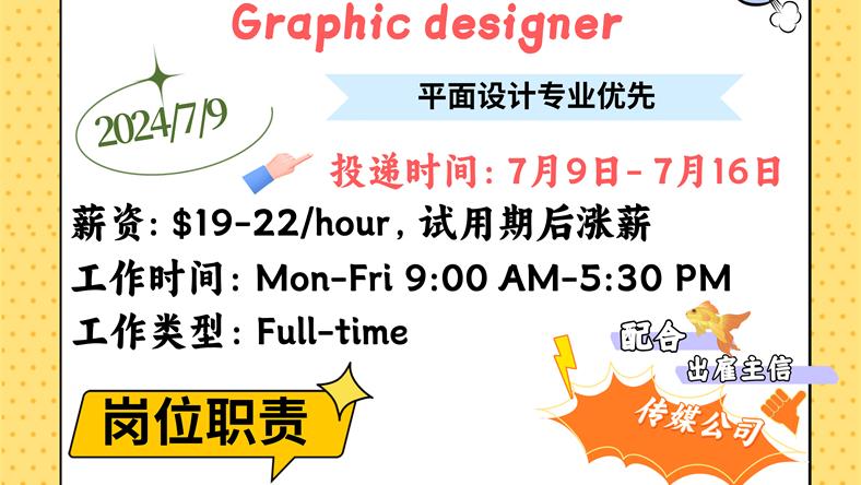 【168新岗】北约克传媒公司招聘Graphic designer 1名 (可移民)