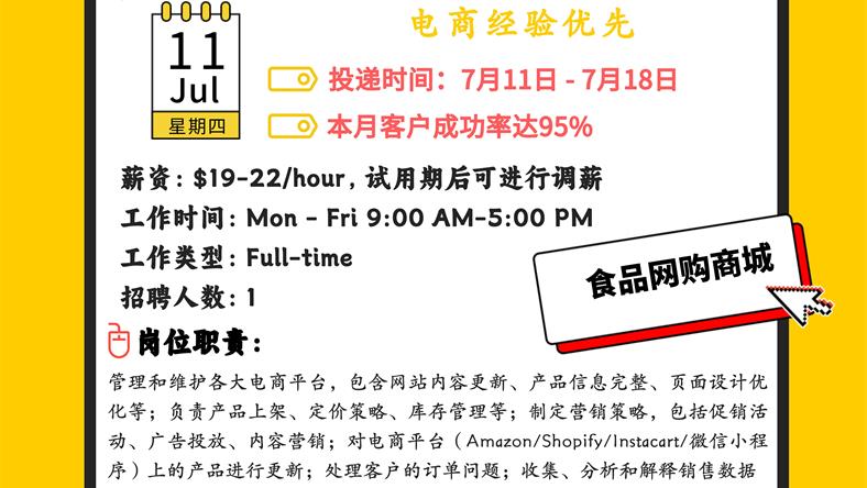 【168新岗】Brampton食品网购商城招聘E-Commerce Specialist 1名