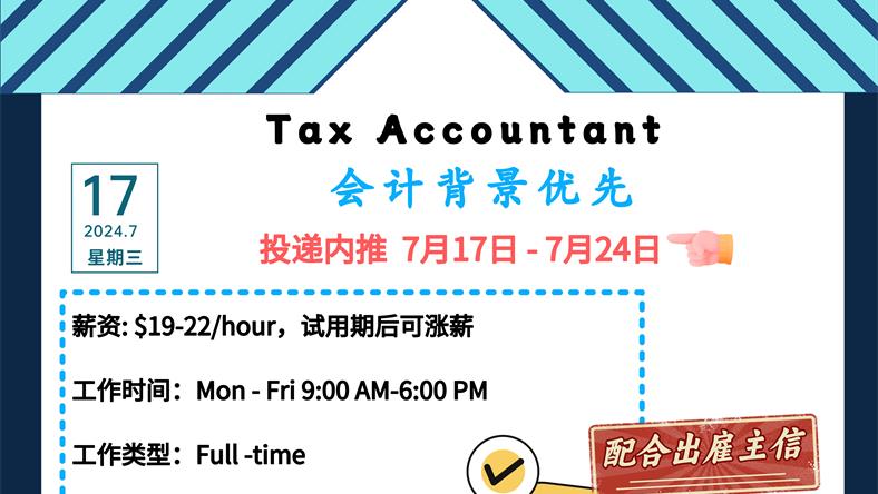【168新岗】密西会计事务所招聘Tax Accountant 1名 (可移民)