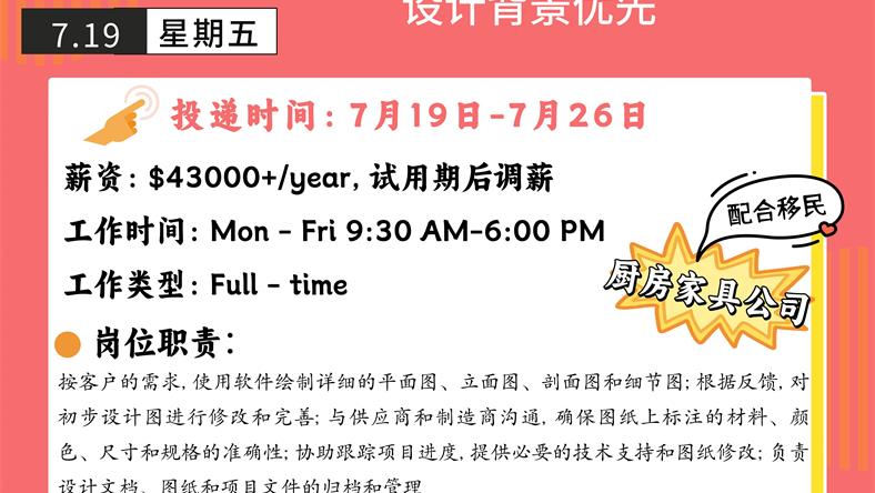 【168新岗】万锦厨房家具公司招聘Drafter 1名 (可移民)