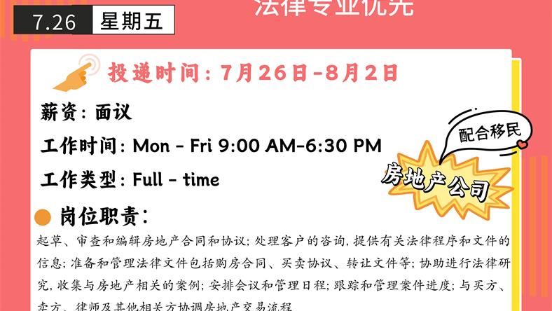 【168新岗】多伦多房地产公司招聘Legal Secretary 1名(可移民)