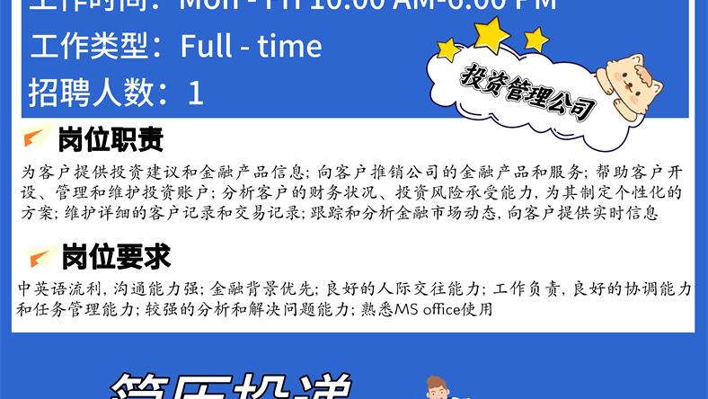【168新岗】北约克投资管理公司招聘Financial Service Representative 1名