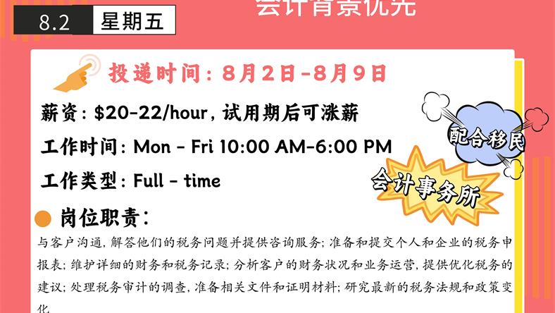 【168新岗】北约克会计事务所招聘Tax Accountant 1名 (可移民)