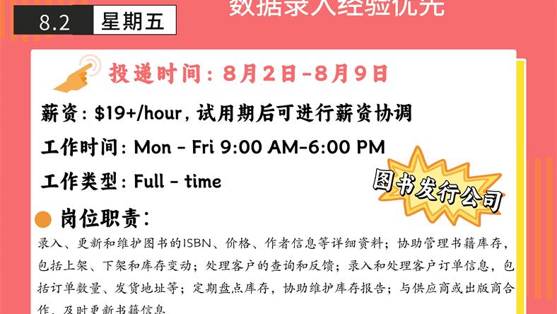 【168新岗】万锦图书发行公司招聘Data Entry Assistant 1名