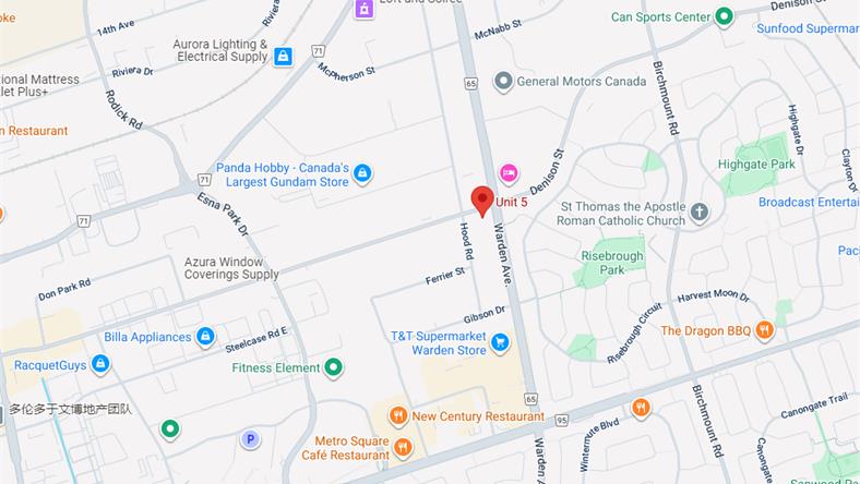 地址:7170 Warden Ave, Unit 5, Markham, ON L3R 8B4 (Warden Ave/Denison Street)